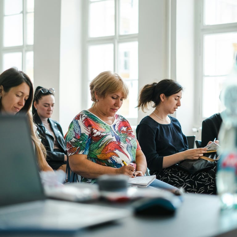 Atelier de pleine conscience ou activité en groupe pour réduire le stress.